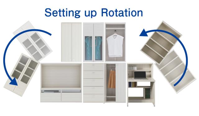 ライフスタイルに合わせて組み替えが出来るシステム家具です。家具を逆さまにしても連結できるように、上専用下専用の区別がありません。