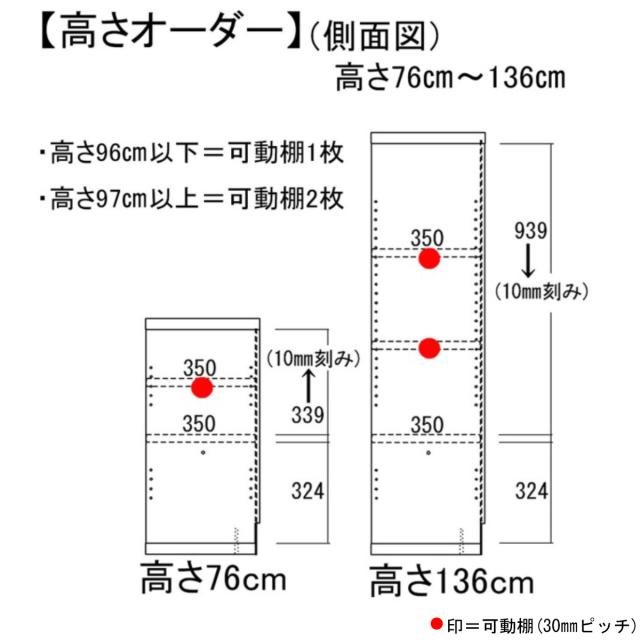 高さ76cm〜136cmまで1cm単位でオーダー