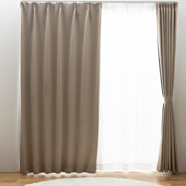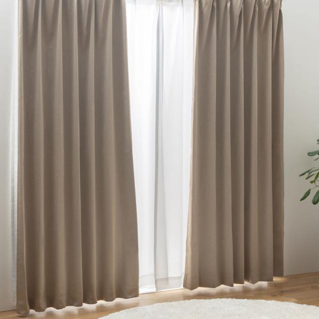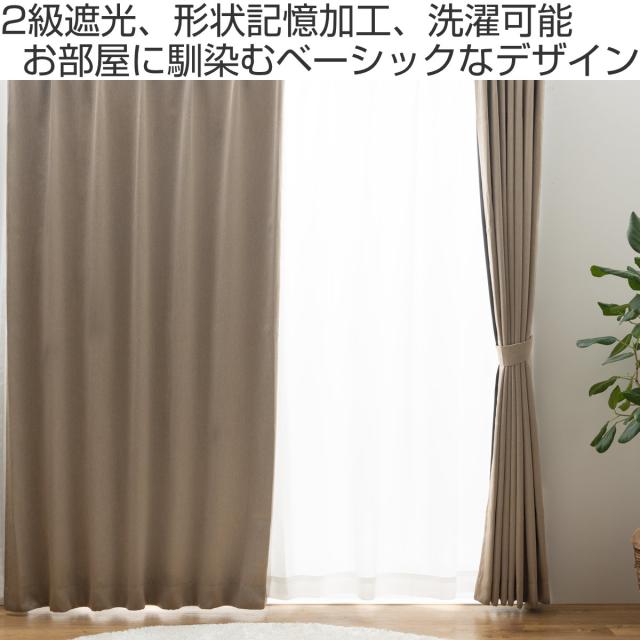 カーテン 2級遮光 形状記憶カーテン 幅100cm×丈105〜200cm(2枚組)・幅150×丈178cm(1枚)・幅200×丈178cm(1枚)ベージュ ( ドレープ 遮光カーテン 既製 間仕切り 窓 目隠し 遮光 形状記億 ウォッシャブル 無地 シンプル )