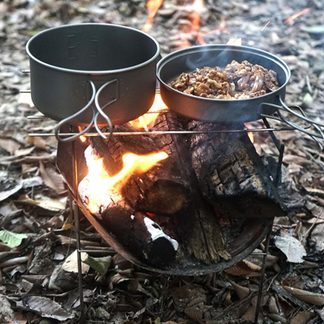 【耐荷重】天面にスピットを取り付ければ鉄鍋やケルトが置ける。たっぷりの鍋でも約5kg程度までは安心の耐久性です。