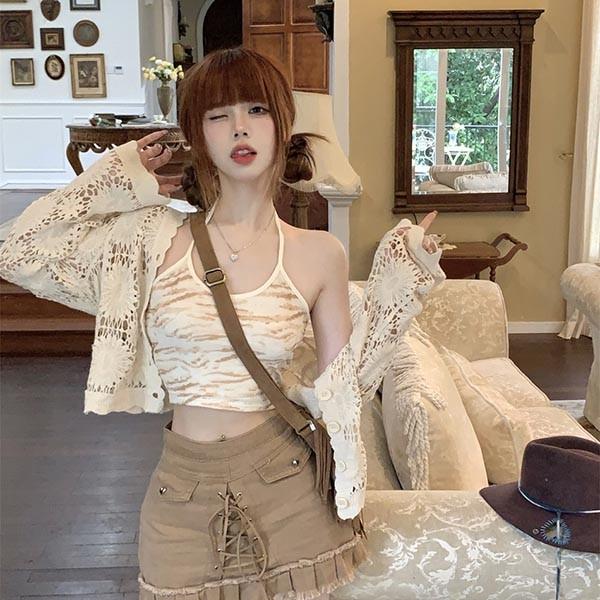 【レビュー投稿で+5%還元】クロシェ編み 夏 トップス サマー ニットカーディガン 透かし編み クロシェニット かぎ編み フロントボタン ボレロ 長袖 ショート セーター 日焼け対策 冷房対策 冷え性対策 eh088x1x1q3