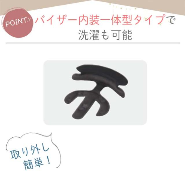 ・バイザー内装一体型タイプで洗濯も可能。
