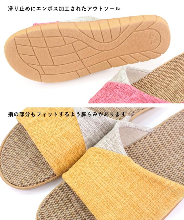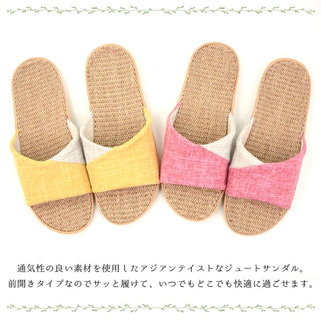 スリッパ 軽量 おしゃれ 麻 ジュート サンダル 涼しい 蒸れない 足裏さらり ジュートスリッパ (ok-js2000m)【メール便送料無料】 内履き 外履き 両用 レディース メンズ 春夏 夏用 通年用 前開き ぺたんこ フラットサンダル 部屋履き 丈夫な底で幅広く使える agesugi_snk
