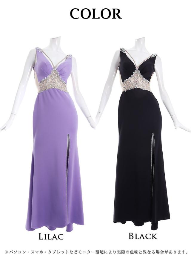☆ハイウエスト位置にビジューを施すことでスタイルアップ効果抜群なロングドレスは、サイドのシアーデザインでくびれを強調し細魅せも叶えてくれます。