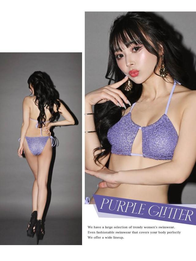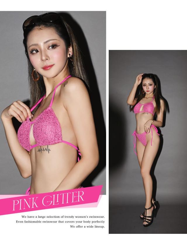 ☆ラメのワンカラーが大人女性の魅力引き立たせる無地のキャバ水着です。