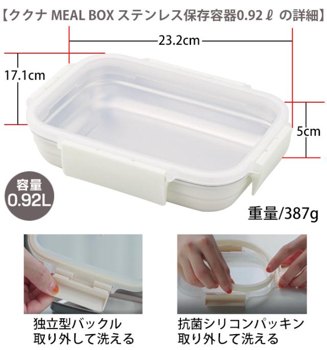 ククナ ミールボックス 920ml フードコンテナ 調理容器 お弁当箱 オーブン グリル 電子レンジ対応 食品 食洗機対応 ステンレス 角型 スタッキング 蓋 フタ 冷凍 冷蔵 つくりおき