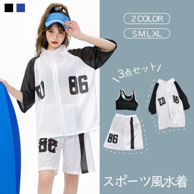 3点セット 水着 半袖 レディース 体型カバー スポーツ風 セパレート 黒 春 夏 無地 韓国風 細見せ ビキニ パッド付き フィットネス水着 露出控えめ ハイウエスト 運動風 女性 大人 可愛い 盛れる おしゃれ アウトドア 海 海水浴 プール ビーチ 旅行 温泉 学生 全2色