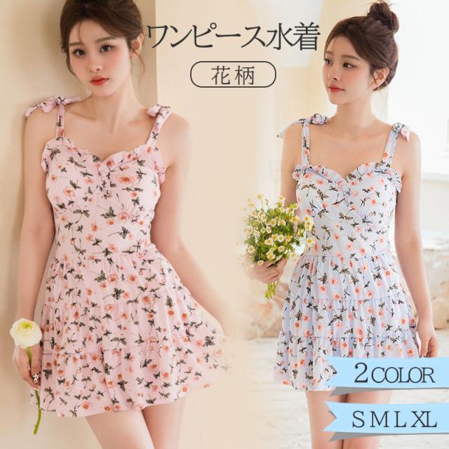 花柄 Aライン ワンピース水着 体型カバー 水着 レディース 春 夏 細見せ 大きいサイズ 大人 オトナ女子 セクシー リボン パッド付き 一体型 オールインワン 露出控えめ ハイウエスト 盛れる 水陸両用 女性 可愛い アウトドア 海 海水浴 プール ビーチ 旅行 温泉 シンプル