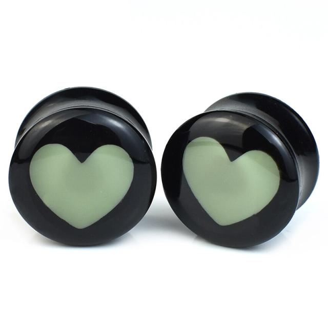 黒色のプラスチック製のプラグに浮き上がるようにデザインされた緑色のハートがオシャレなボディピアス。
