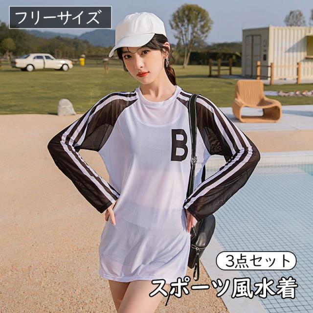 3点セット 水着 半袖 レディース 体型カバー スポーツ風 セパレート 黒 白 春 夏 無地 韓国風 細見せ ビキニ パッド付き フィットネス水着 露出控えめ ハイウエスト 運動風 女性 大人 可愛い 盛れる おしゃれ アウトドア 海 海水浴 プール ビーチ 旅行 温泉 学生
