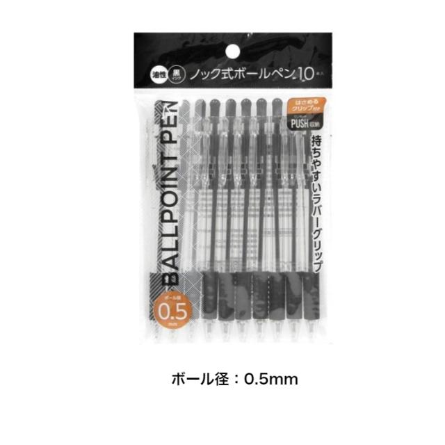 【事務用ボールペン】ノック式ボールペン ボール径:0.5mm 0.7mm 10本入り 油性ボールペン 事務用品 まとめ買い ポイント消化500円送料無料