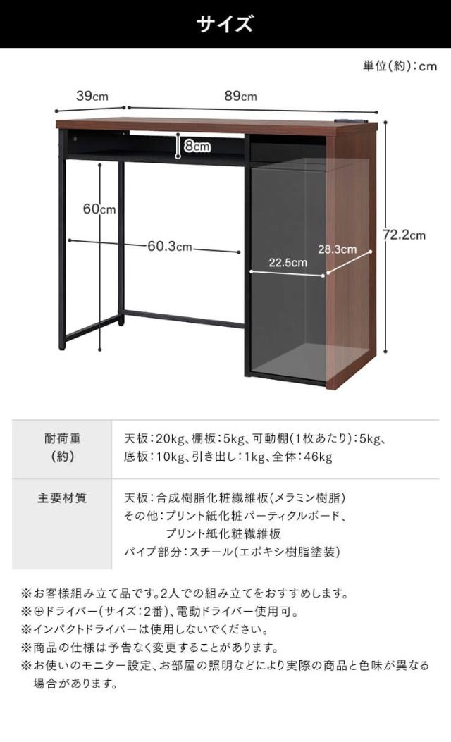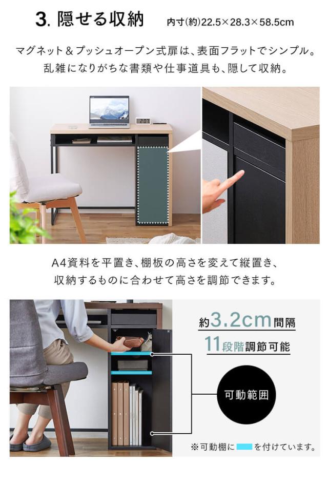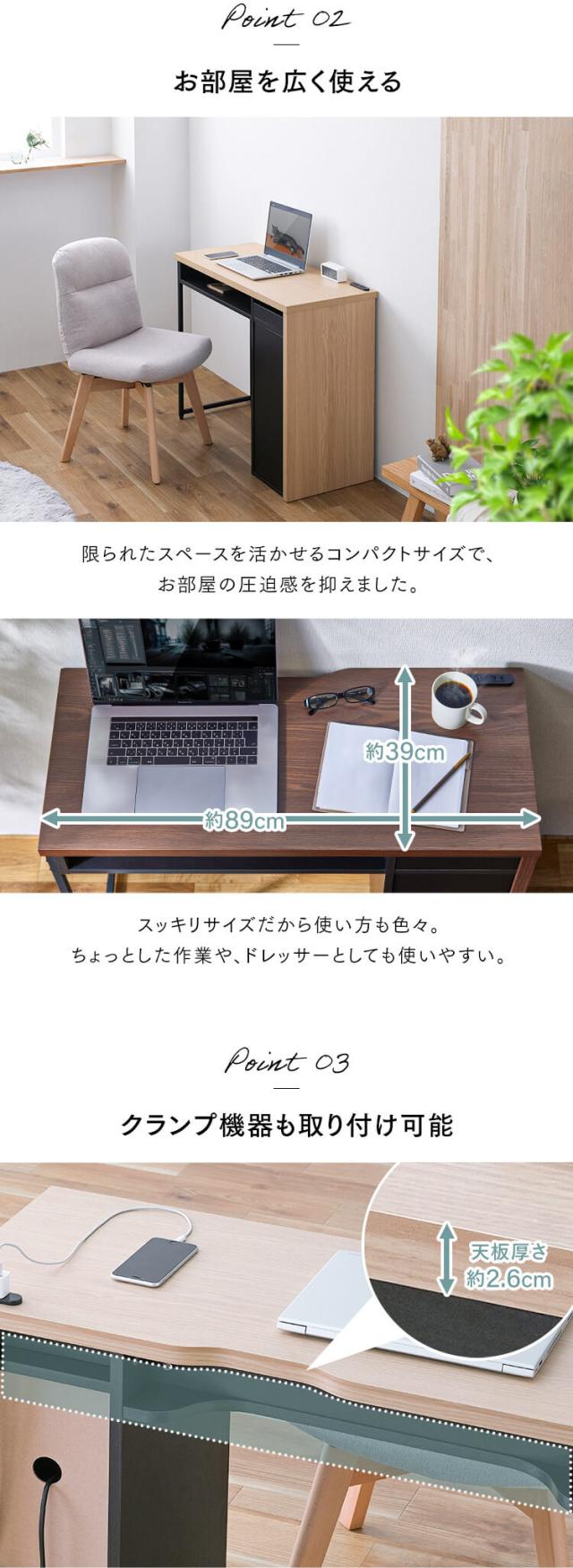 デスク パソコンデスク 収納付きデスク SDK-890 可動棚 収納 棚 11段階 机 テーブル オフィス コンパクト オープン収納 小物収納 引出収納 タップ収納 クランプ取付可能 在宅勤務 2口コンセント コンセント