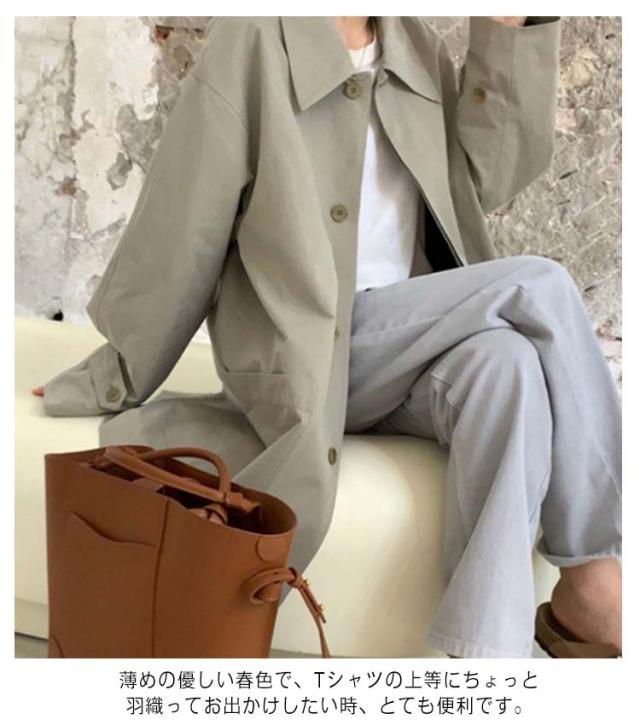 送料無料 ステンカラーコート 春 アウター コート レディース スプリングコート トレンチコート ミディアム コットン 春コート カジュアルコート ゆったり 大きいサイズ 薄手 通勤 通学 韓国ファッション