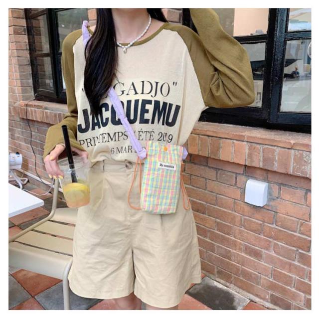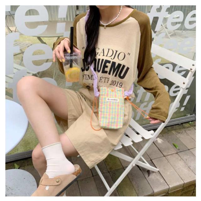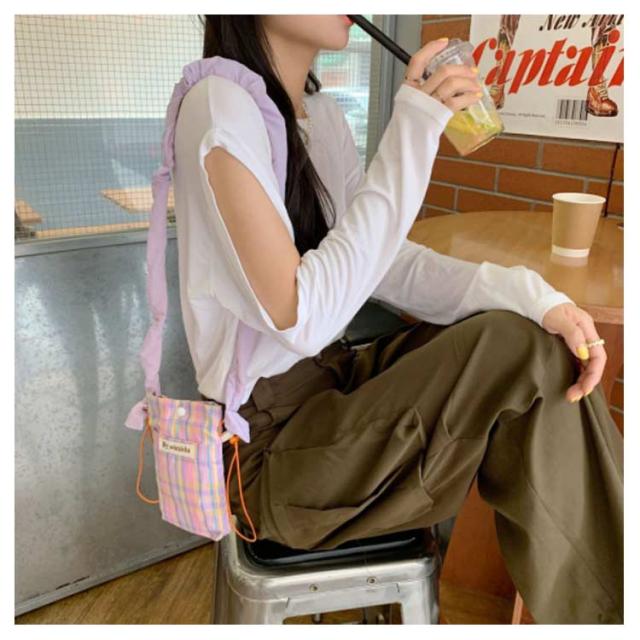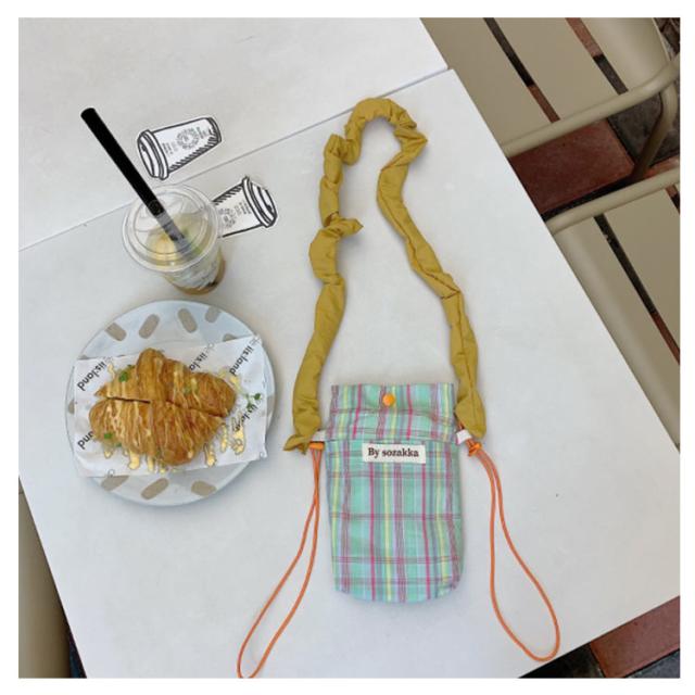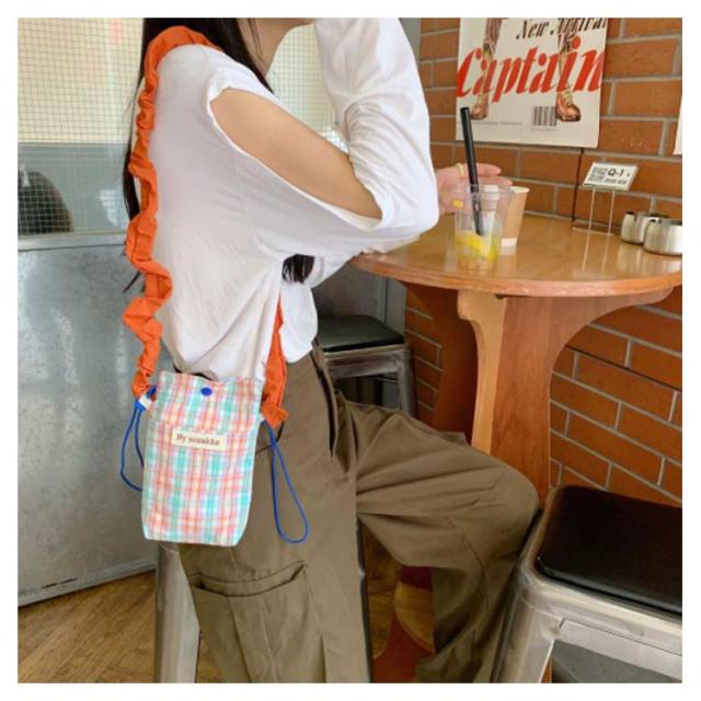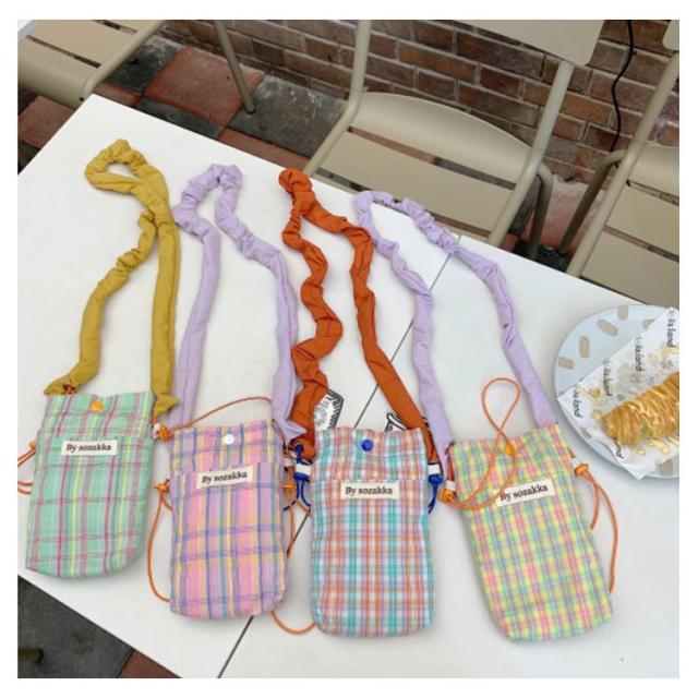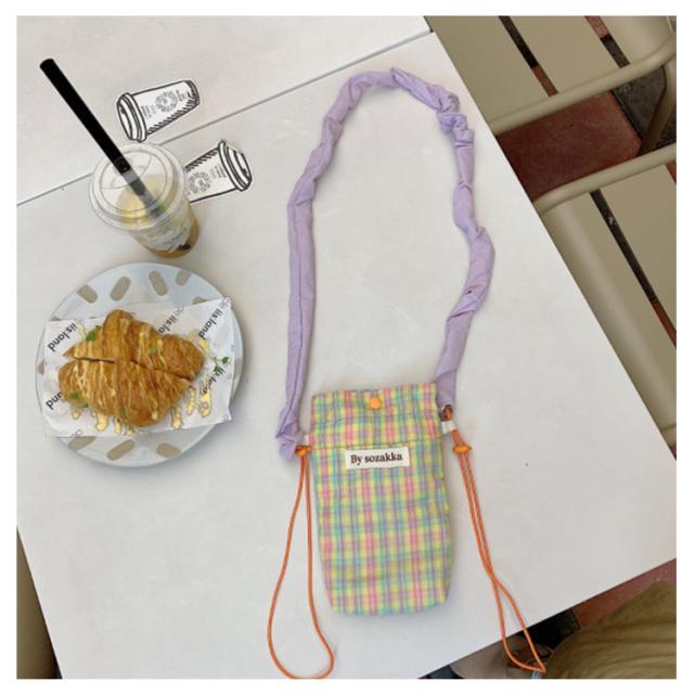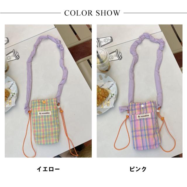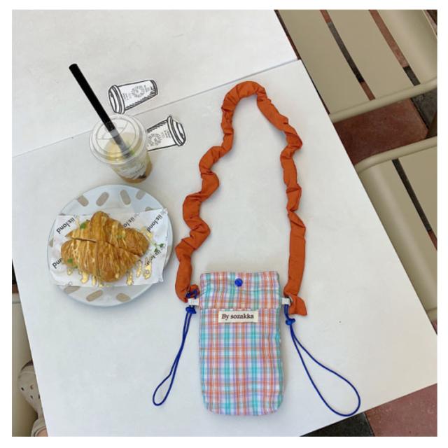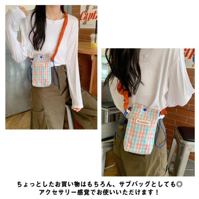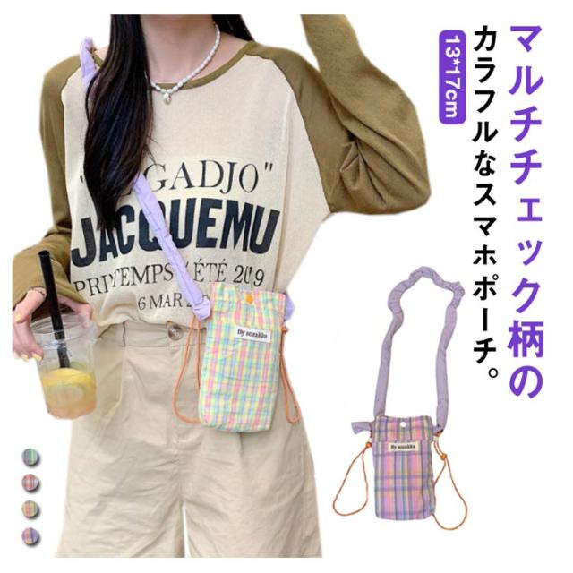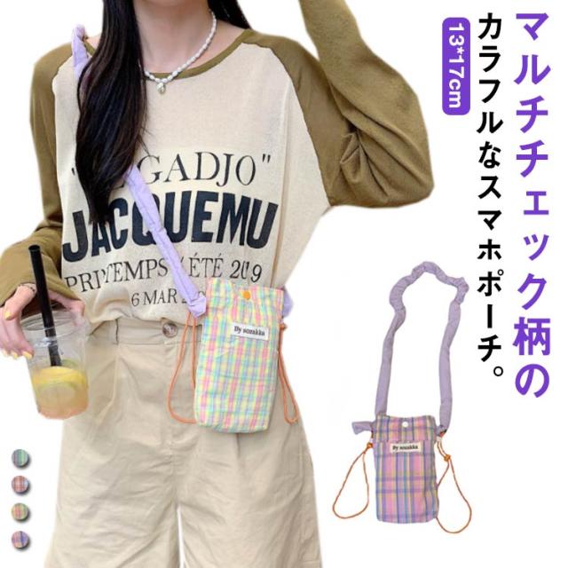 スマホポーチ スマホショルダーバッグ レディース スマホポシェット 布 おしゃれ チェック柄 マルチカラー カラフル 軽量 斜めがけ ショルダー ポーチ ストラップ 縦型 韓国 学生 女子 高校生 スナップボタン かわいい【送料無料】