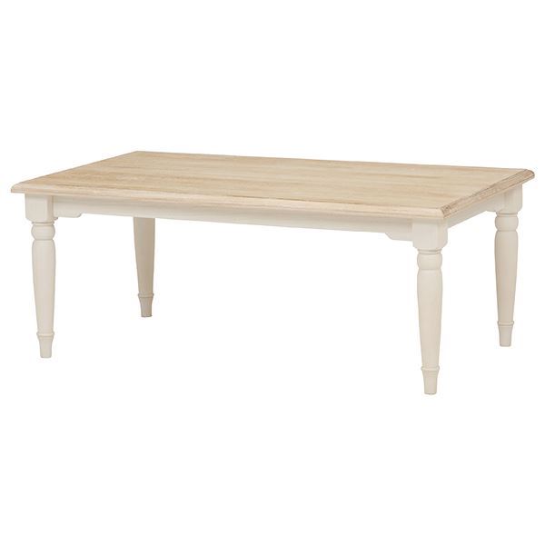 シャビーシックな雰囲気の天然木 木製 製センターテーブル 机 、幅90cmのホワイトカラー リビングやダイニングに最適なブロカントシリーズ 白 ローテーブル 机 低い ロータイプ センターテーブル センターテーブル 約幅90cm 長方形 ホワイト シャビーシック ブロカントシリーズ リビング ダイニング 白