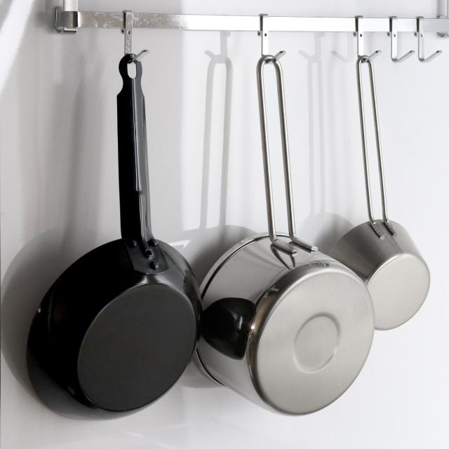 持ち手をフックに引っ掛けて吊り下げることができます。同シリーズで揃えても場所を取らずに収納ができます。