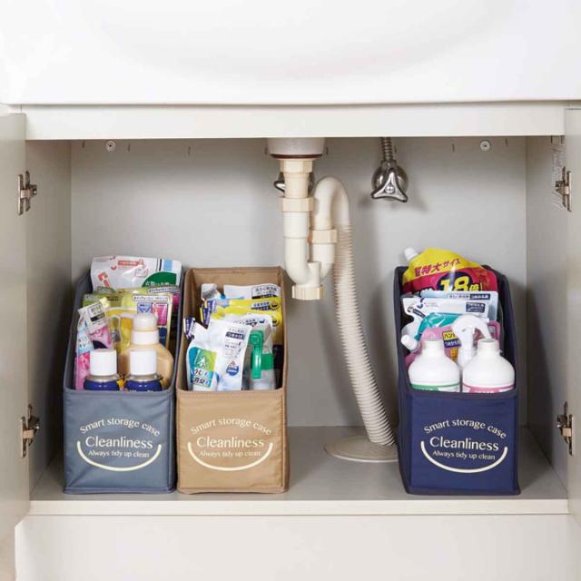 ●スッキリおしゃれに整理整頓できる、たためる洗面台下収納BOXです。