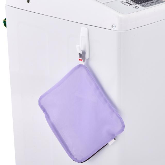 洗濯機まわりや物干し竿に干したり収納するのに便利なループが付いています。使用後に洗濯機横のフックに引っ掛けたり、乾かすのに便利です。