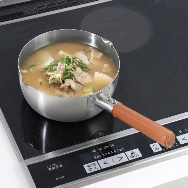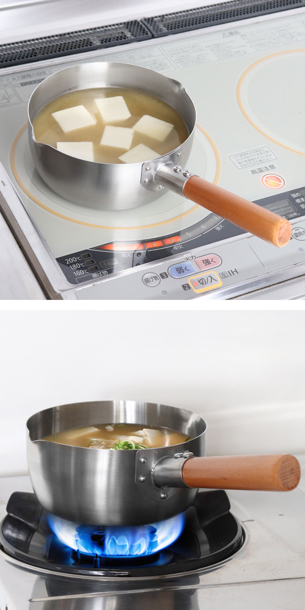 茹でる、煮るはもちろん、炒める、蒸すといった多様な調理法に適しており、家庭に一つは欠かせない雪平鍋です。18cmサイズは家族2〜4人分の味噌汁などを作るのにちょうどいいサイズです。ガス火はもちろん、IHクッキングヒーターでも使っていただけるので、引越しなどでキッチンの環境が変わってしまっても安心です。
