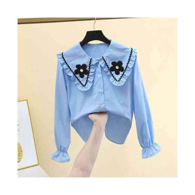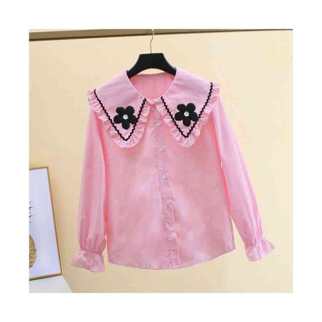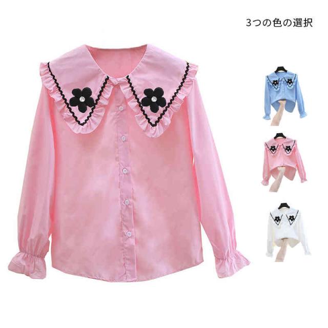 フリル ゆったり 春秋 子供服 インナーブラウス キッズ 花柄ブラウス 長袖 フリルブラウス おしゃれブラウス 女の子 フリルシャツ フリルシャツ ブラウス 無地 お洒落 おしゃれ 可愛い
