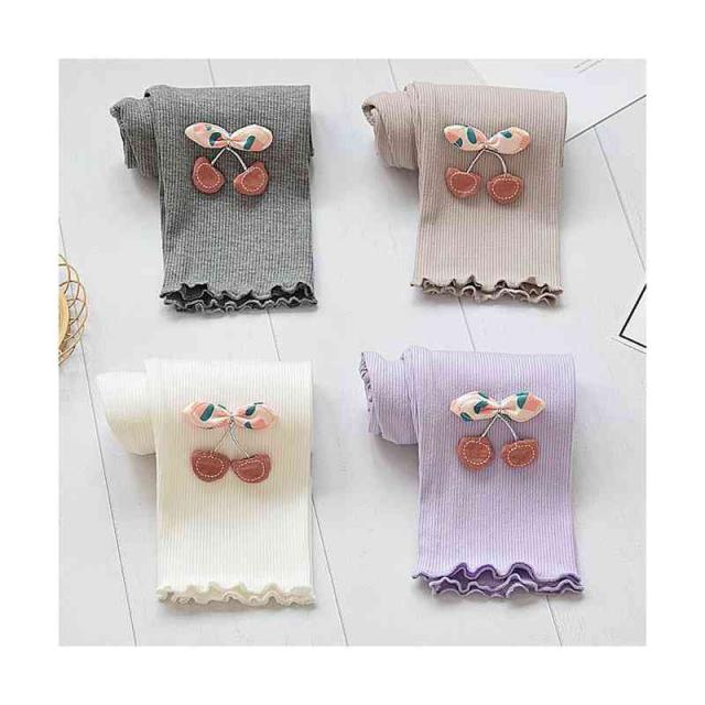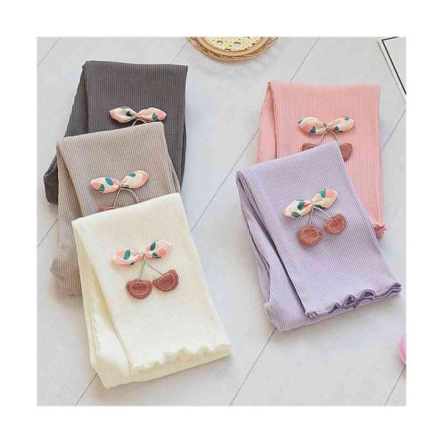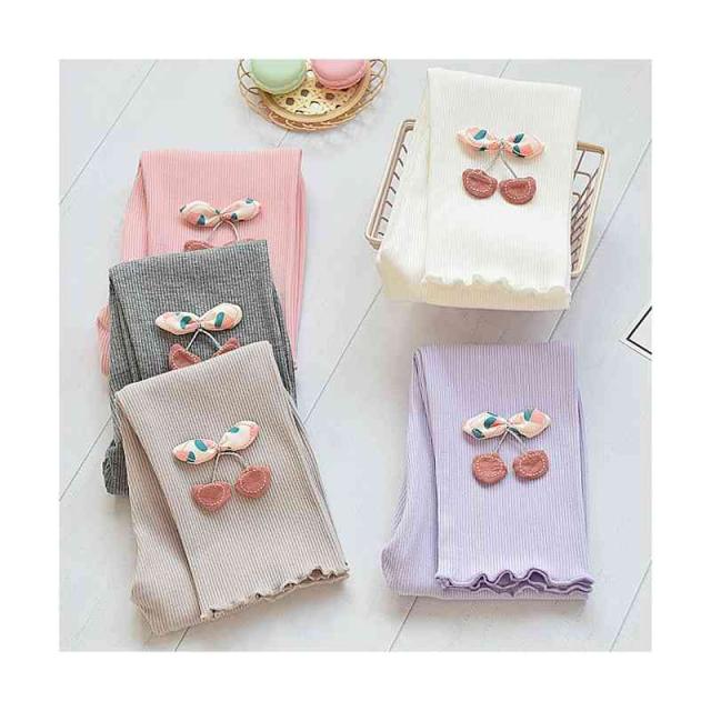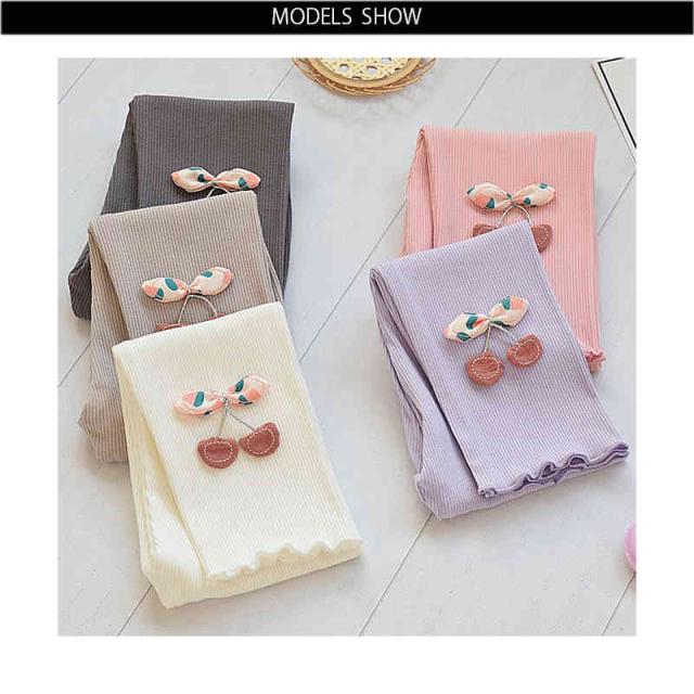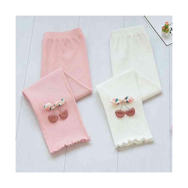 ボトムス キッズ ロングパンツ 九分丈 春秋 女の子 シンプル インナーパンツ パンツ レギンス パンツ シンプル カジュアル おしゃれ フリルパンツ 送料無料 おでかけ 桜桃柄