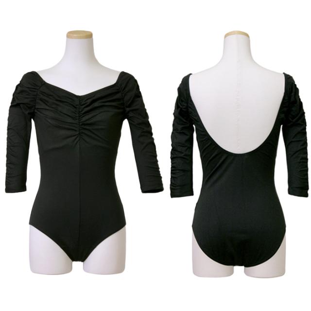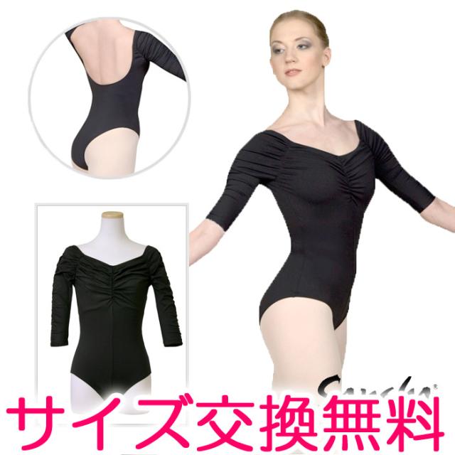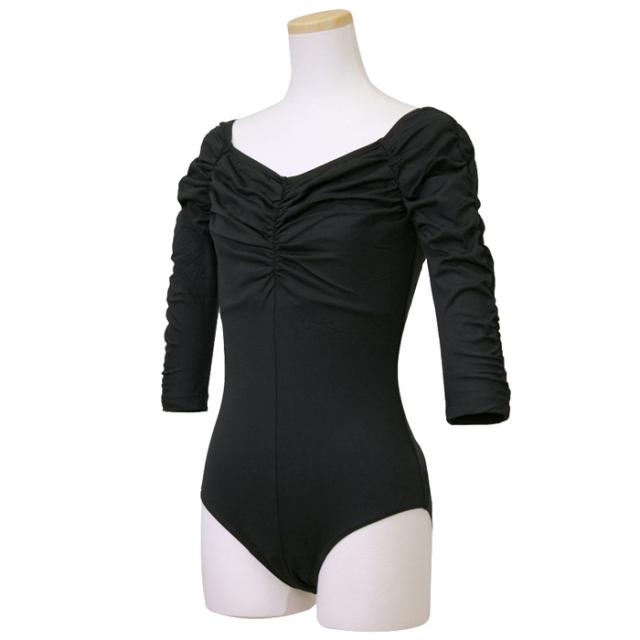 レオタード【サンシャ】KH4509 KAYENA(カエナ)5分袖レオタード ジュニア 大人 練習 発表会 舞台 おしゃれ ブラック 黒 通販