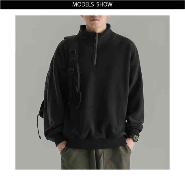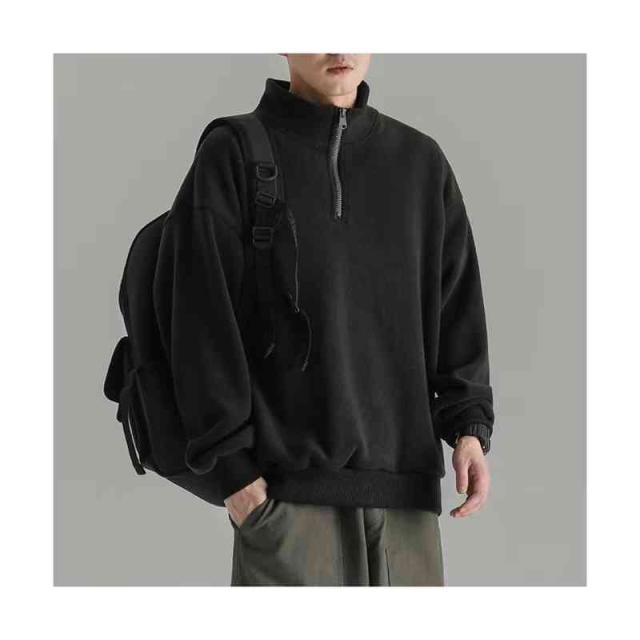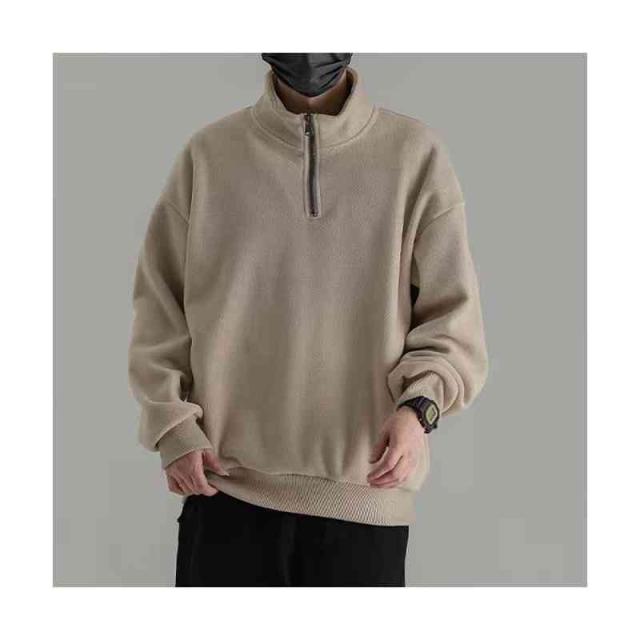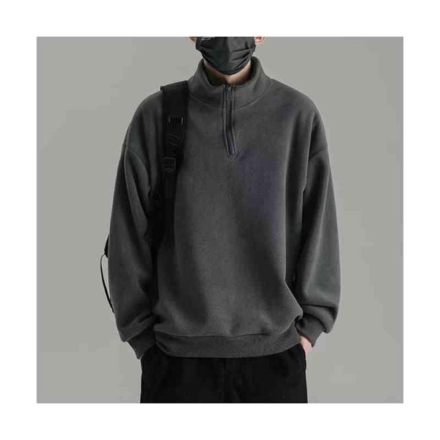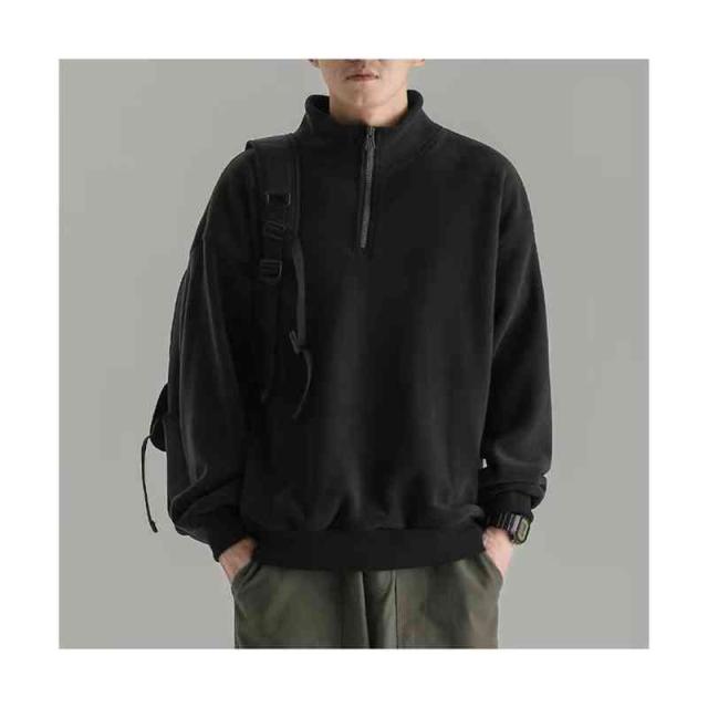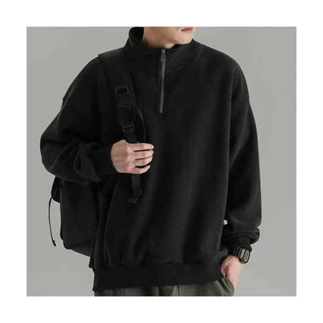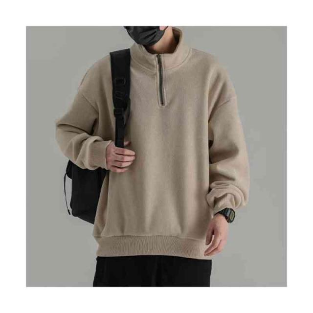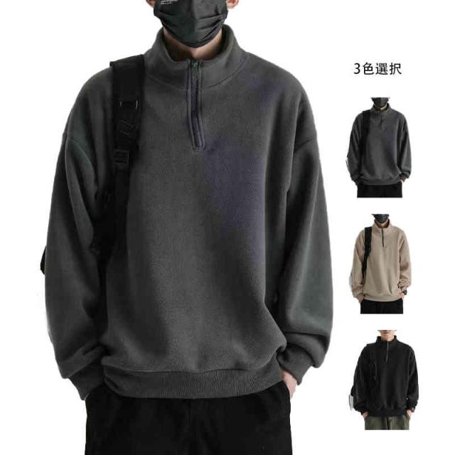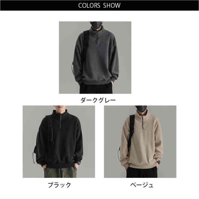 メンズ カットソー フリース 裏起毛 ハーフジップ トレーナー