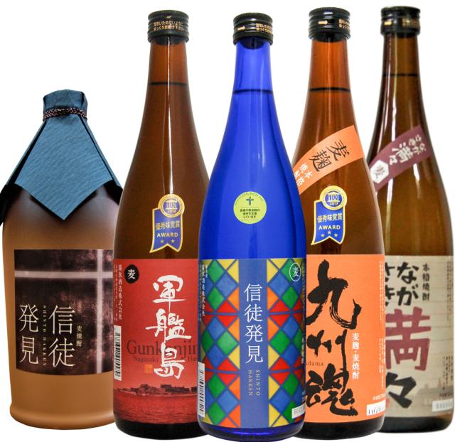 遠藤周作生誕100年記念 長崎外海むぎ焼酎飲み比べ720ML5本セット/ 25゚信徒発見 36゚信徒発見 ながさき満々 軍艦島 霧氷