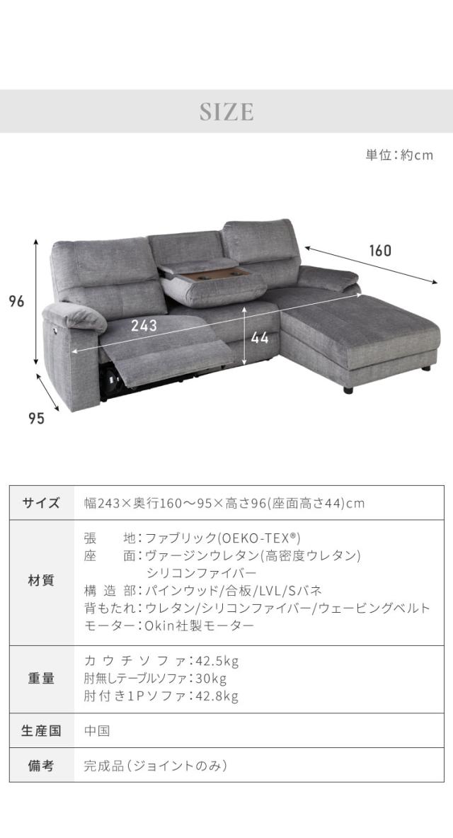 電動 カウチソファ ソファ リクライニング ファブリック L字 幅243 シェーズロングソファ コーナーソファ ハイバック おしゃれ リビング 高級 ハイバック ドリンクホルダー付き テーブル付き(代引不可)【送料無料】