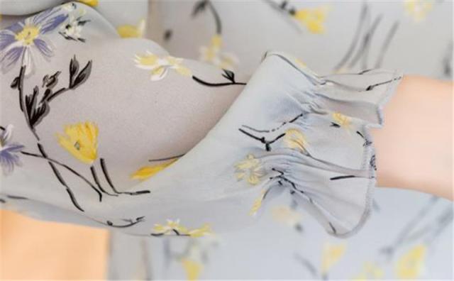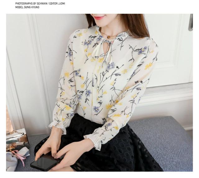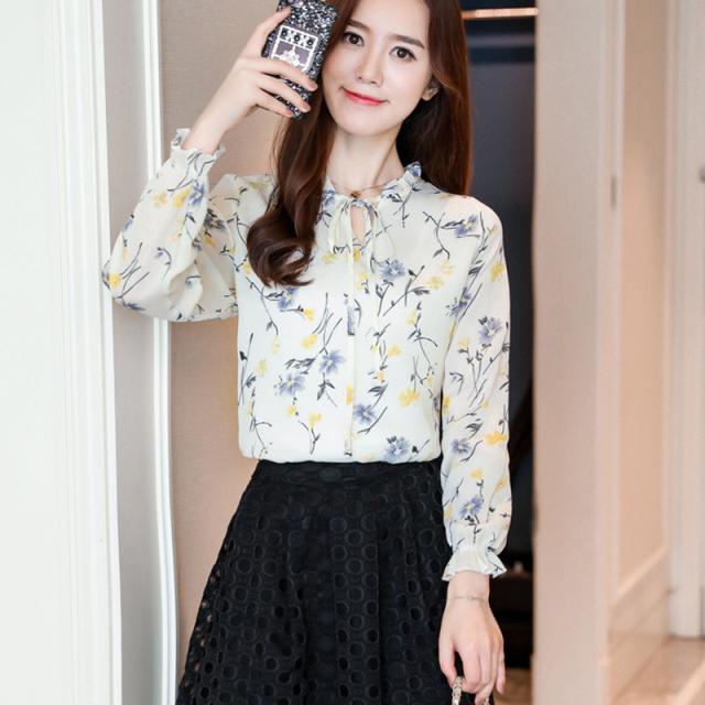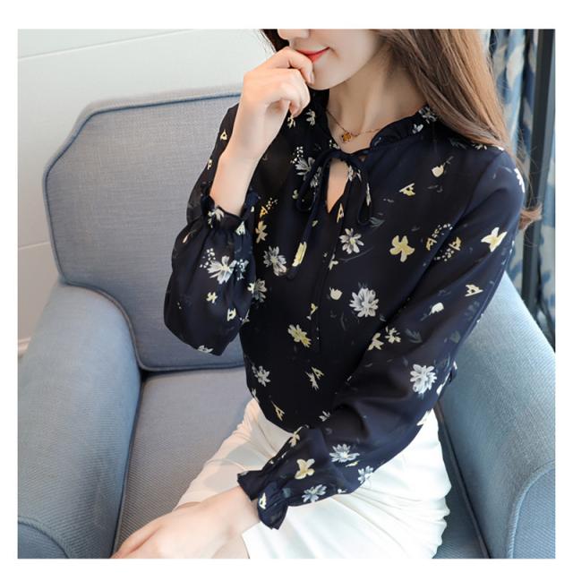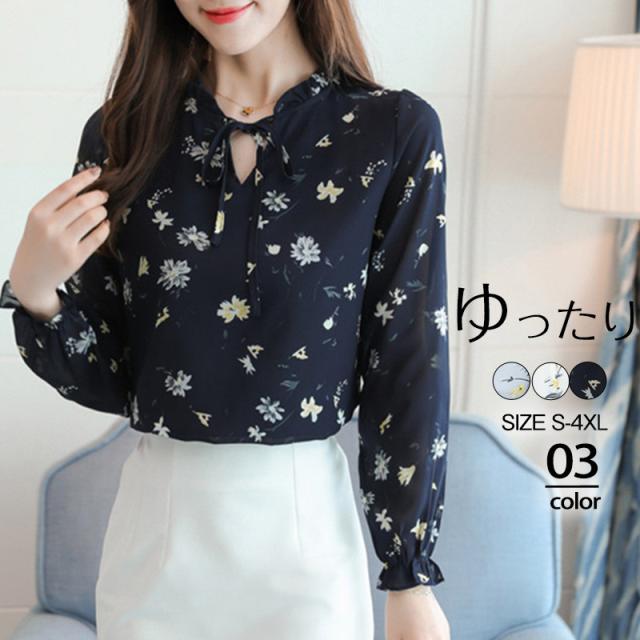ブラウス レディース シャツ 長袖 花柄 シフォン パフスリーブ フラワー リボン ゆったり 着痩せ 大きいサイズ 普段着 通勤