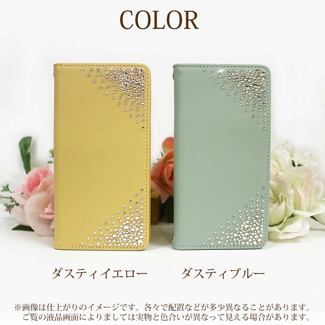 スマホケース くすみカラー Dusty デコ ラインストーン 手帳型 ベルトなし マグネット 左利き用 スタンド機能 スマホカバー 留め具なし iPhone17 iPhone16e iPhone15 iPhone14 AQUOS sense9 sense8 Galaxy A54 Xperia 10VII BASIO active3多機種対応 送料無料