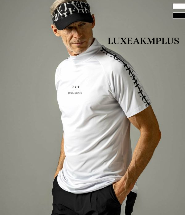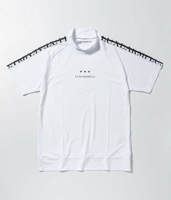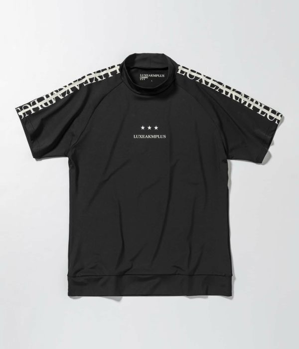 SALE セール LUXEAKMPLUS リュクスエイケイエムプラス ラインロゴ半袖モックネックTシャツ スポーツ ジム トレーニング 運動 GOLF ゴルフ