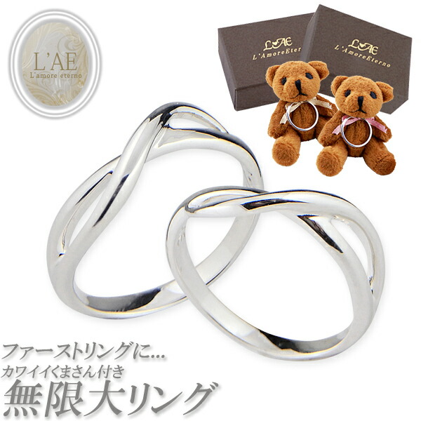 | コメント | 無限大(インフィニティ)をモチーフにしたやわらかい印象のペアリング。厚みが約1mmのナチュラルさは、普段指輪をしない方でも快適にお過ごしいただけます。 ストラップにもなるかわいいベアー付きで初めてのお揃いのペアリング(ファーストペアリング)にオススメ◎ 彼氏や彼女・大切な人へのサプライズプレゼントやマリッジリング・結婚指輪としてもお使いいただけます。 |