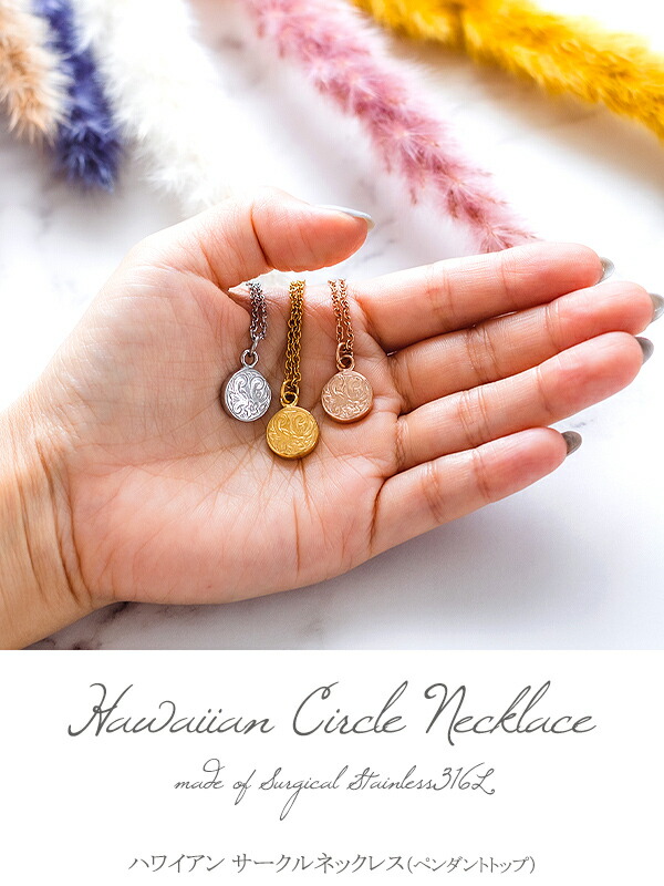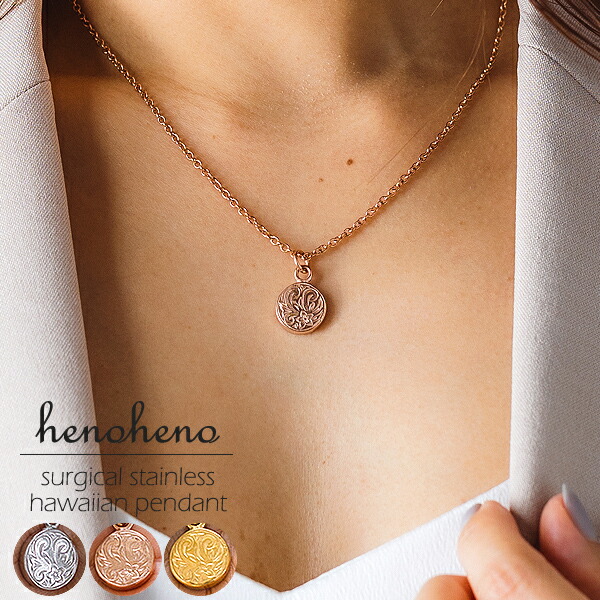 ハワイアンジュエリー ネックレス コイン coin レディース 人気 小さめ 上品 トレンド 金属アレルギー サークル 丸型 円形 スクロール サージカルステンレス ペンダント トップ メンズ プチプラ 母の日 女性 男女兼用 henoheno ブランド