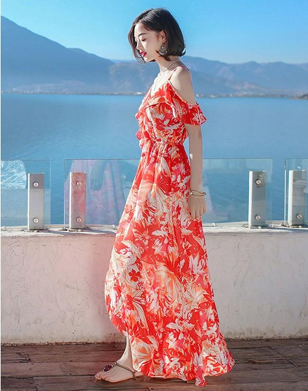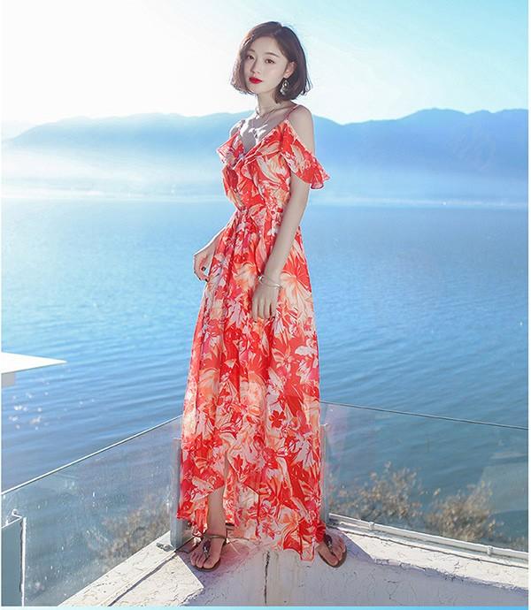【レビュー投稿で+5%還元】夏 ワンピース ロングワンピース 花柄 フリル キャミソール セクシー ゆったり 体型カバー おしゃれ 夏ワンピ 夏ワンピース マキシ丈 花柄 夏 春 夏服 リゾート 旅行 きれいめ カジュアル ノースリーブ キレイめ S M L bs008s1