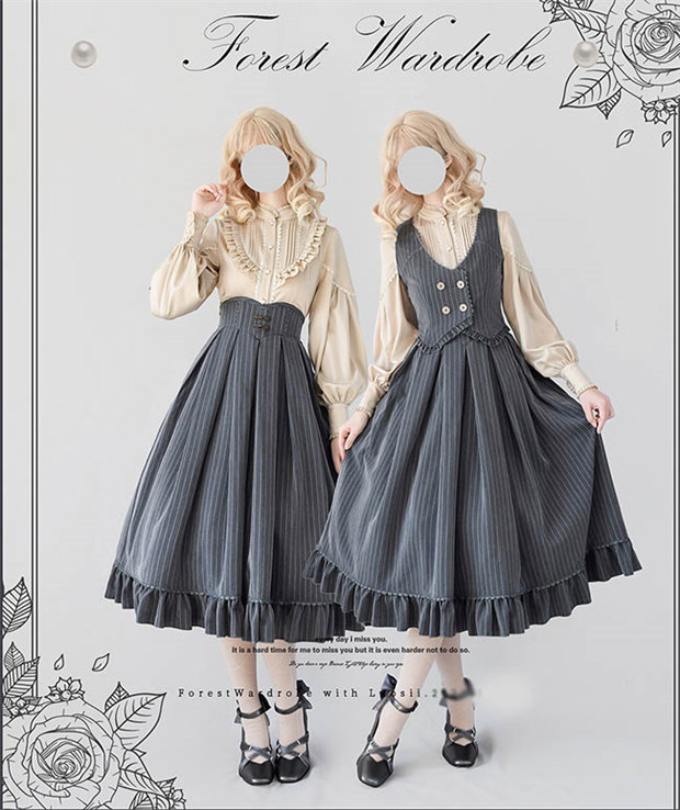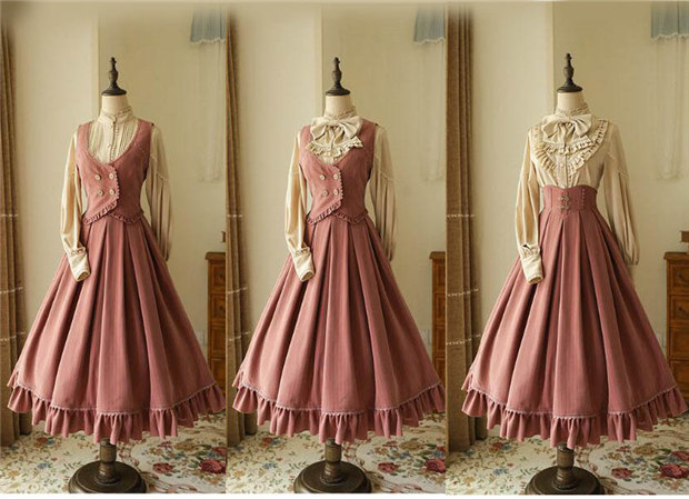 ロリータ スカート レディース ロング ジャンスカ lolita cla フレアスカート ベスト クラロリ レトロロングスカートドレス ロリータファッション d9442c0c0la