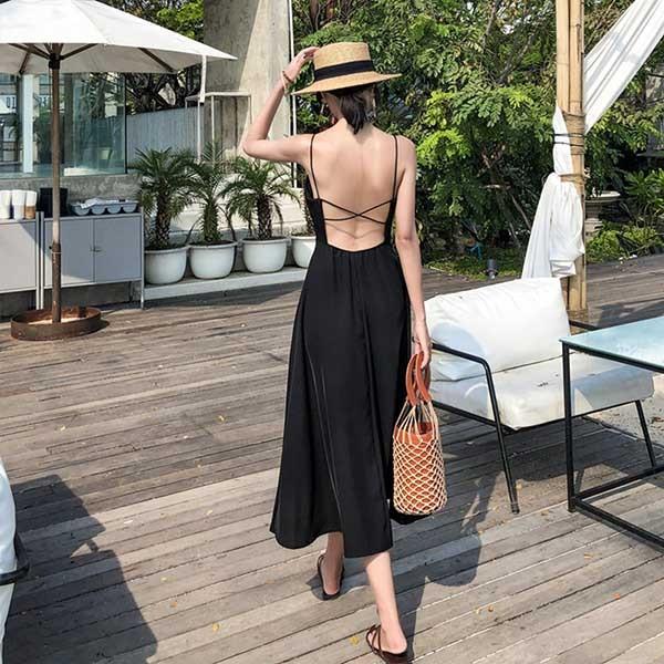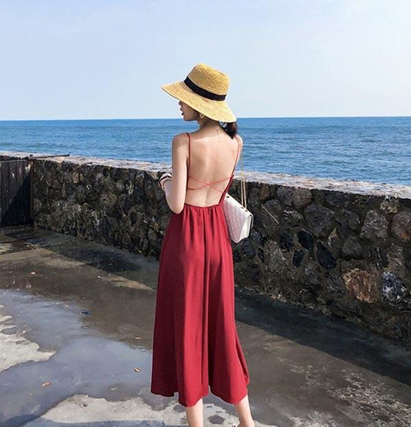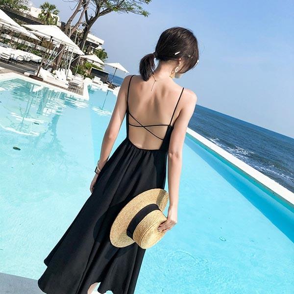 【レビュー投稿で+5%還元】背中 開き ワンピース リゾートワンピ ハワイ リゾートワンピース 沖縄 夏ワンピ セクター ロングワンピース 肩見せ 夏 レディース ビーチ 旅行 大人可愛い 母の日 プレゼント Aライン 無地 ブラック ワインレッド
