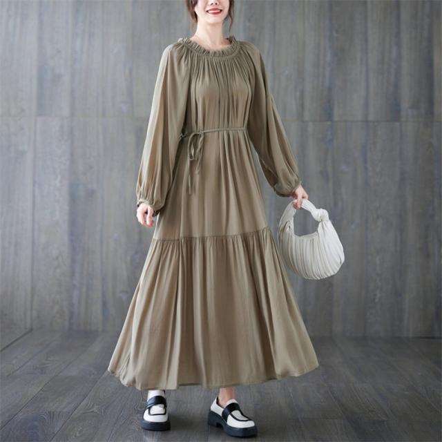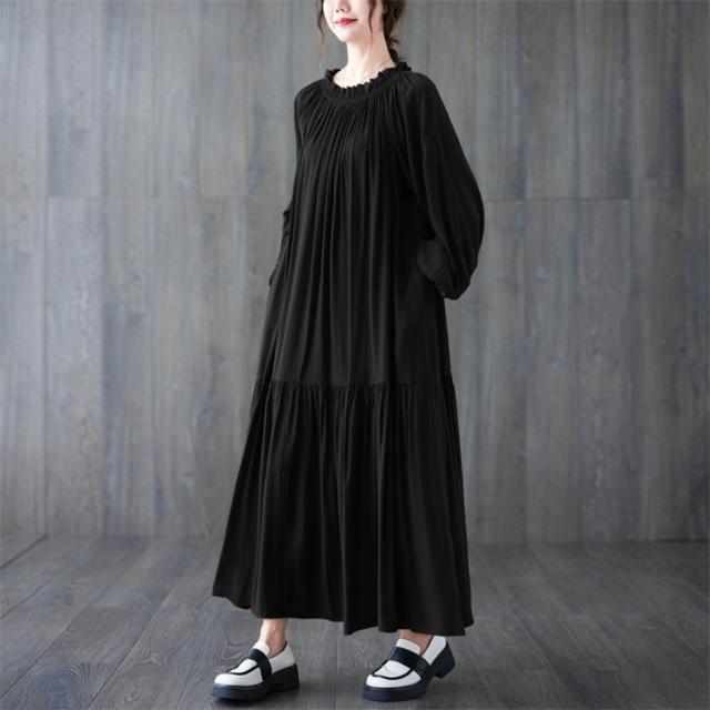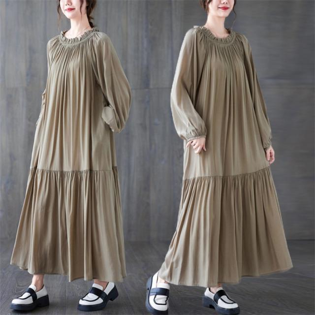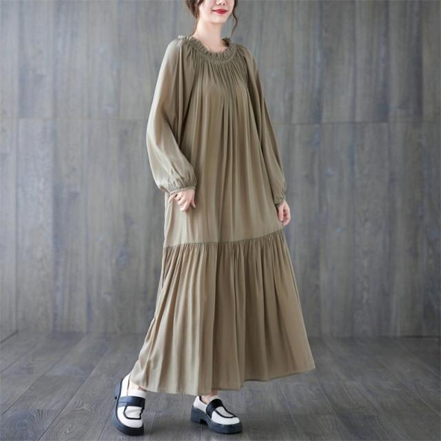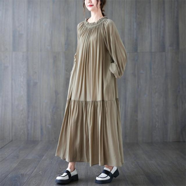 ロングワンピース レディース マキシ丈 フレア Aライン ゆったり 自然に体型カバー 大人可愛いコーデ楽しめる リラクシー オーバーサイズシルエット