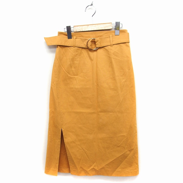 【中古】マーキュリーデュオ MERCURYDUO Aライン スカート ロング丈 スリット リングベルト 無地 M オレンジイエロー
