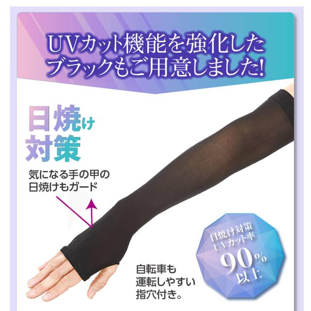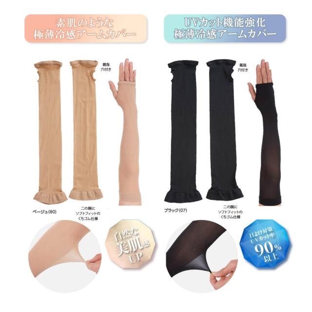 | 【砂山靴下】ストッキング素材 極薄 接触冷感 トーンアップ 指穴付き アームカバー 【9449pw】 | ||||