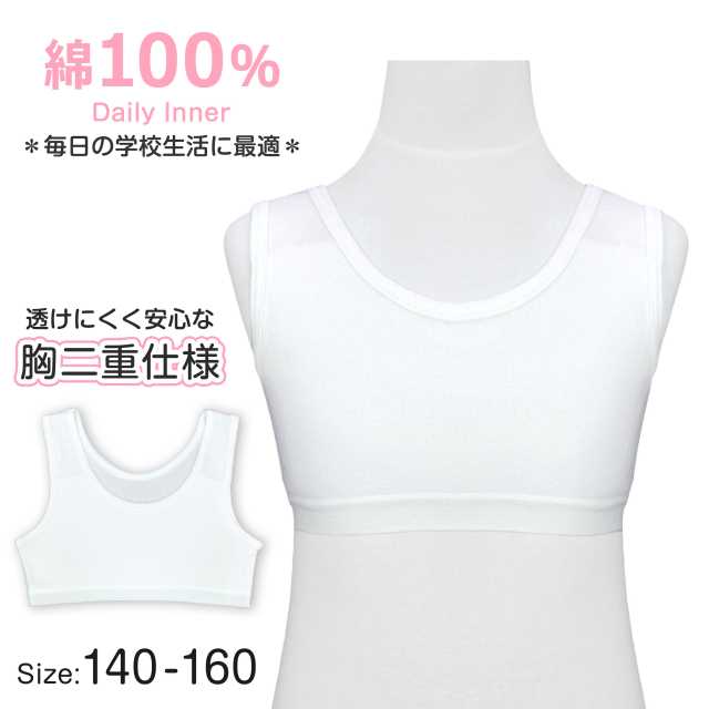 ハーフトップ 胸二重 子供 肌着 ジュニアブラ スクールインナー 無地 綿100%ホワイト