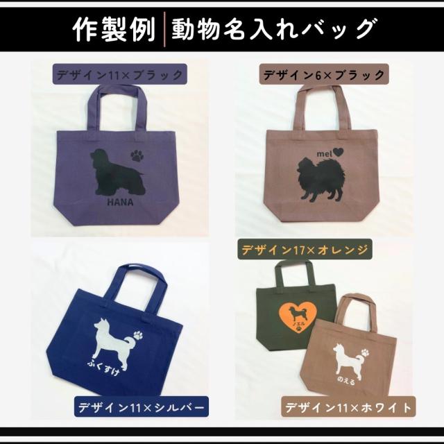 ワンちゃん名入れプリントバッグバッグとデザインを選んでご注文時、内容を指定するだけ!
