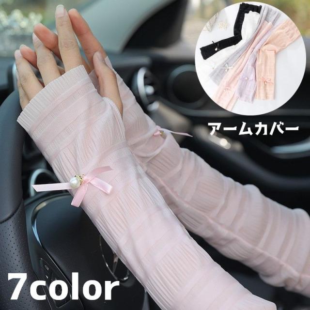 アームカバー ハンドカバー レディース 女性 日焼け防止 紫外線防止 紫外線対策 手袋 薄手 リボン 袖 指なし シンプル かわ