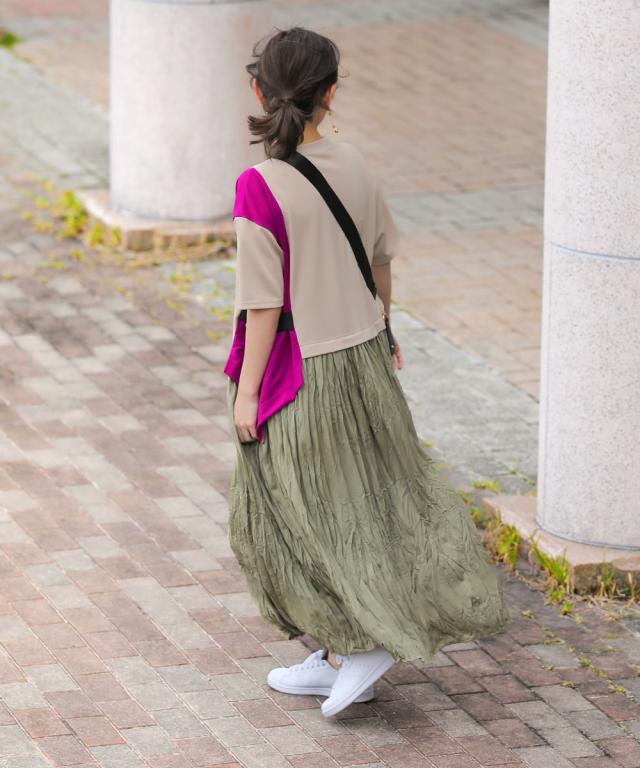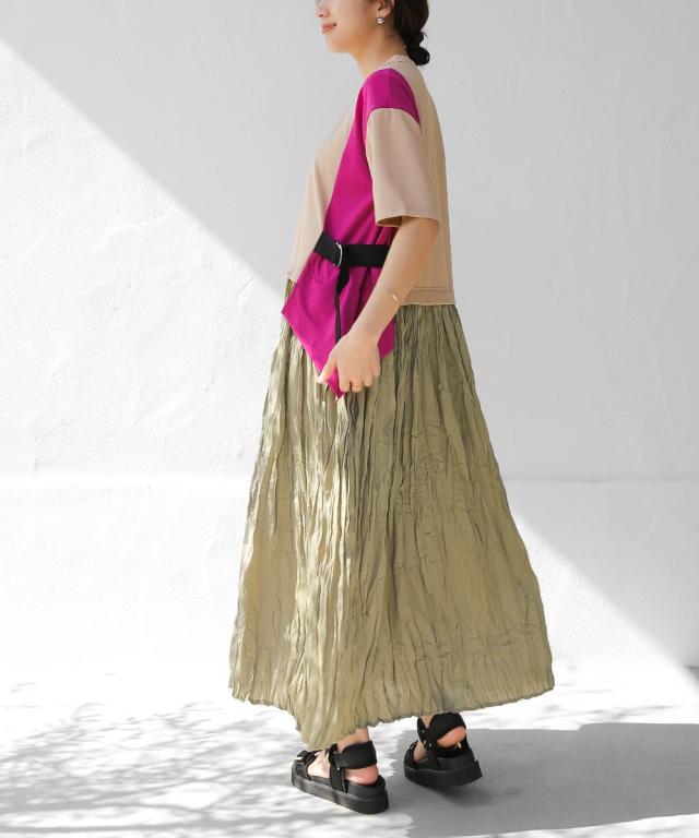 スカート部分は裏地がなくてもワッシャー加工で透けにくく涼しい。