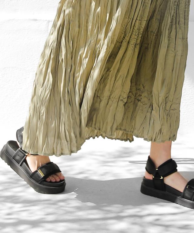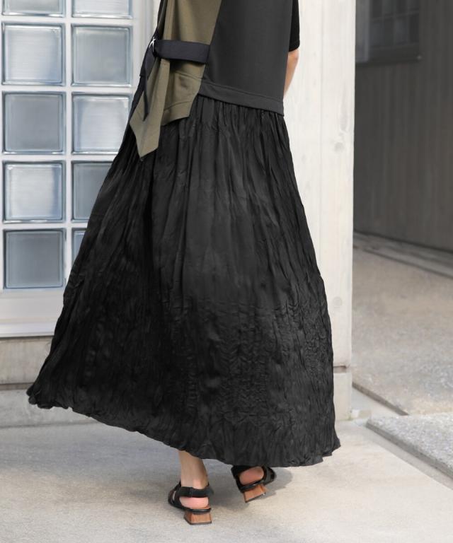 長時間の座り移動でもシワが気にならないようにスカート部分はワッシャー加工を施し