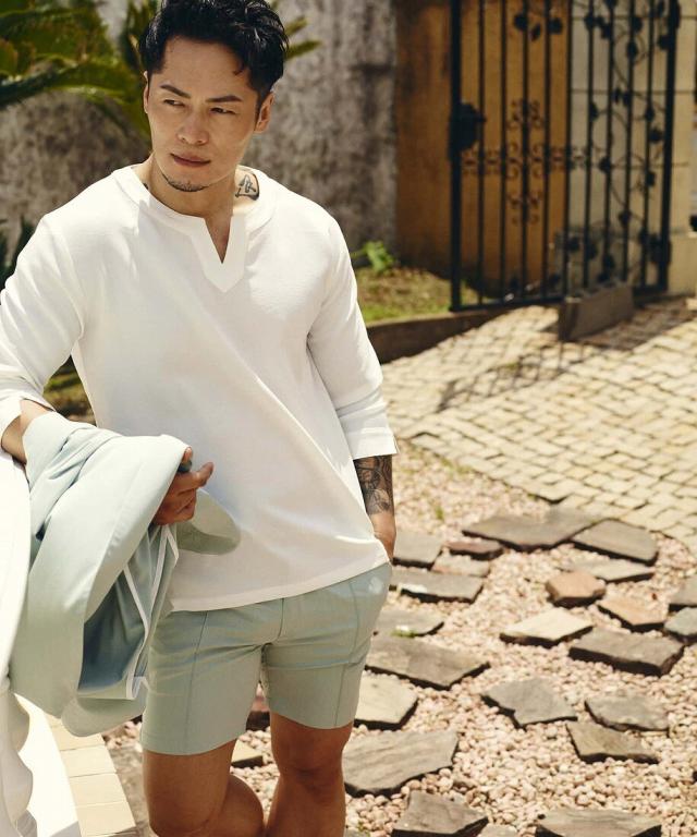 敢えてポケットや切り替えを排したプレーンなフロントが大人の余裕を形成。
