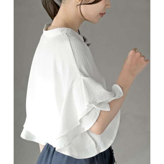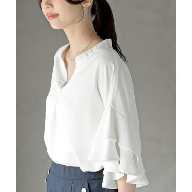 バンドカラーフリル袖ブラウス