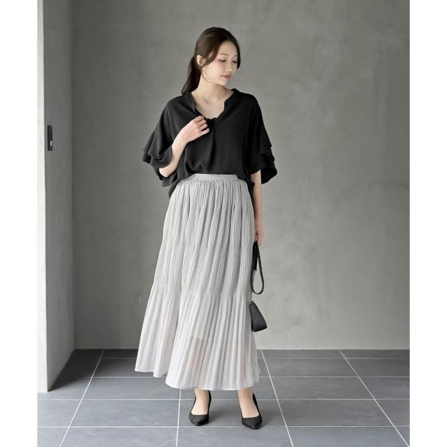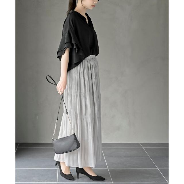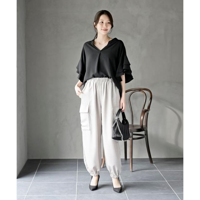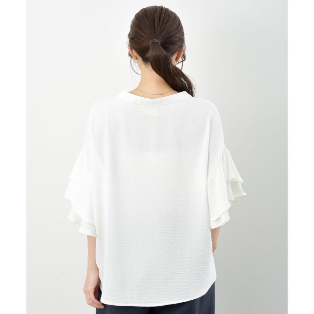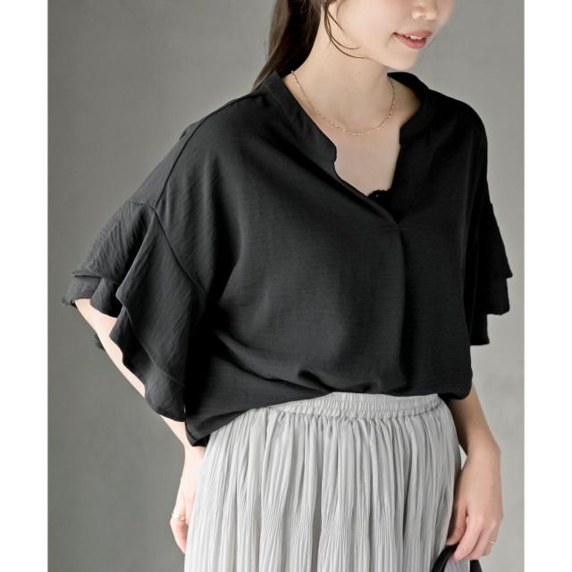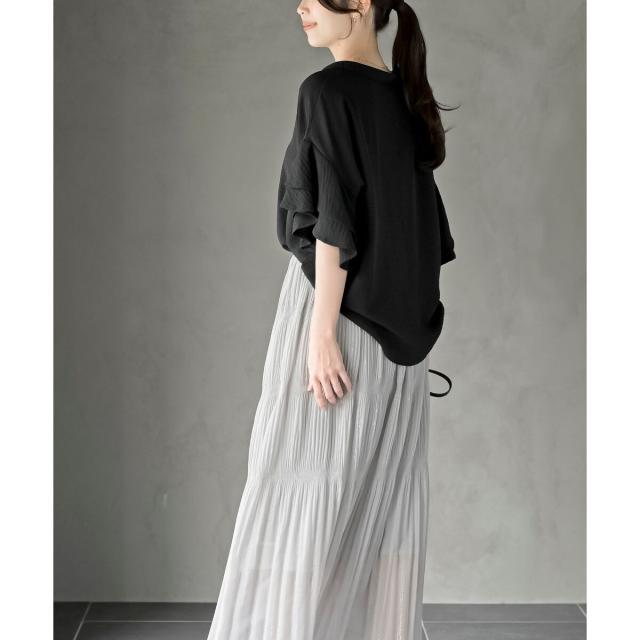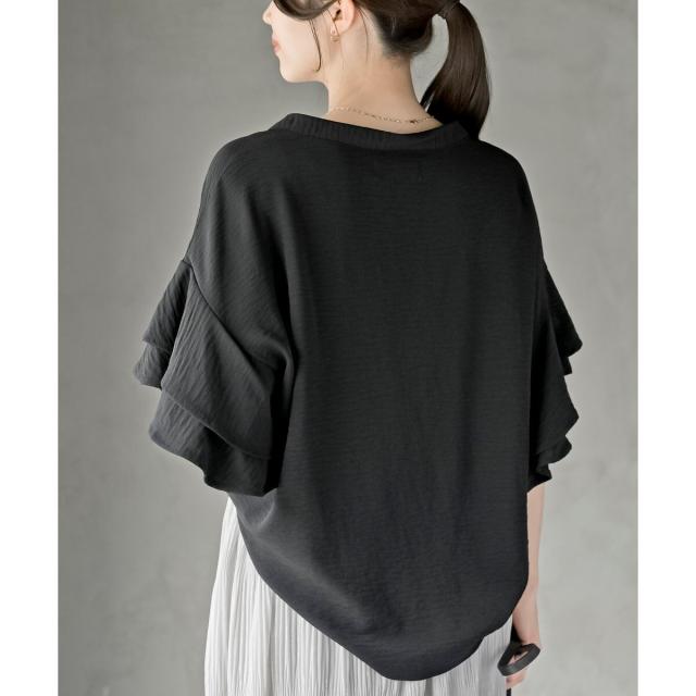 2枚重ねのフリル袖がエレガントな雰囲気に。