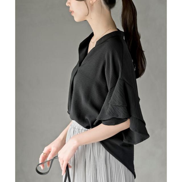 エレガントに揺れるフレアスリーブブラウス
