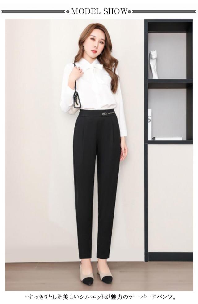 テーパードパンツ 細身 通勤 通勤 レディース 美脚パンツ ポケット付き タック入り オフィスカジュアル 春 ウェストバックゴム